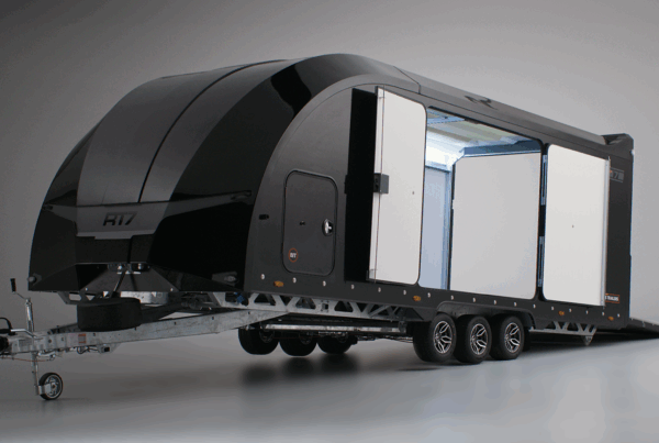 Porte-voiture fermé BRIAN JAMES RT7 L. 6.00 x l. 2.30 m x H. 1.88 m – 3 essieux PTAC 3500 kg
