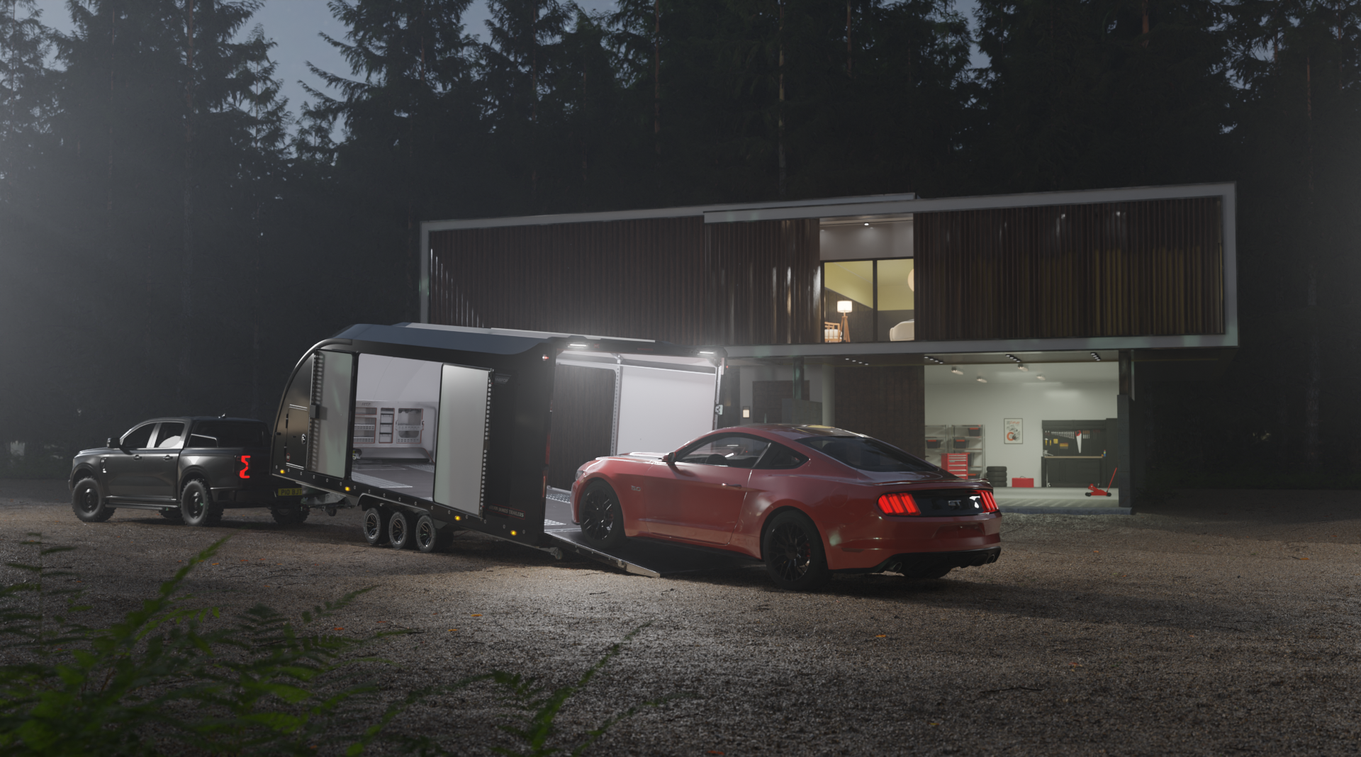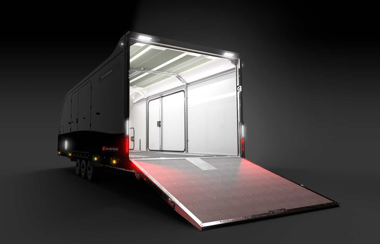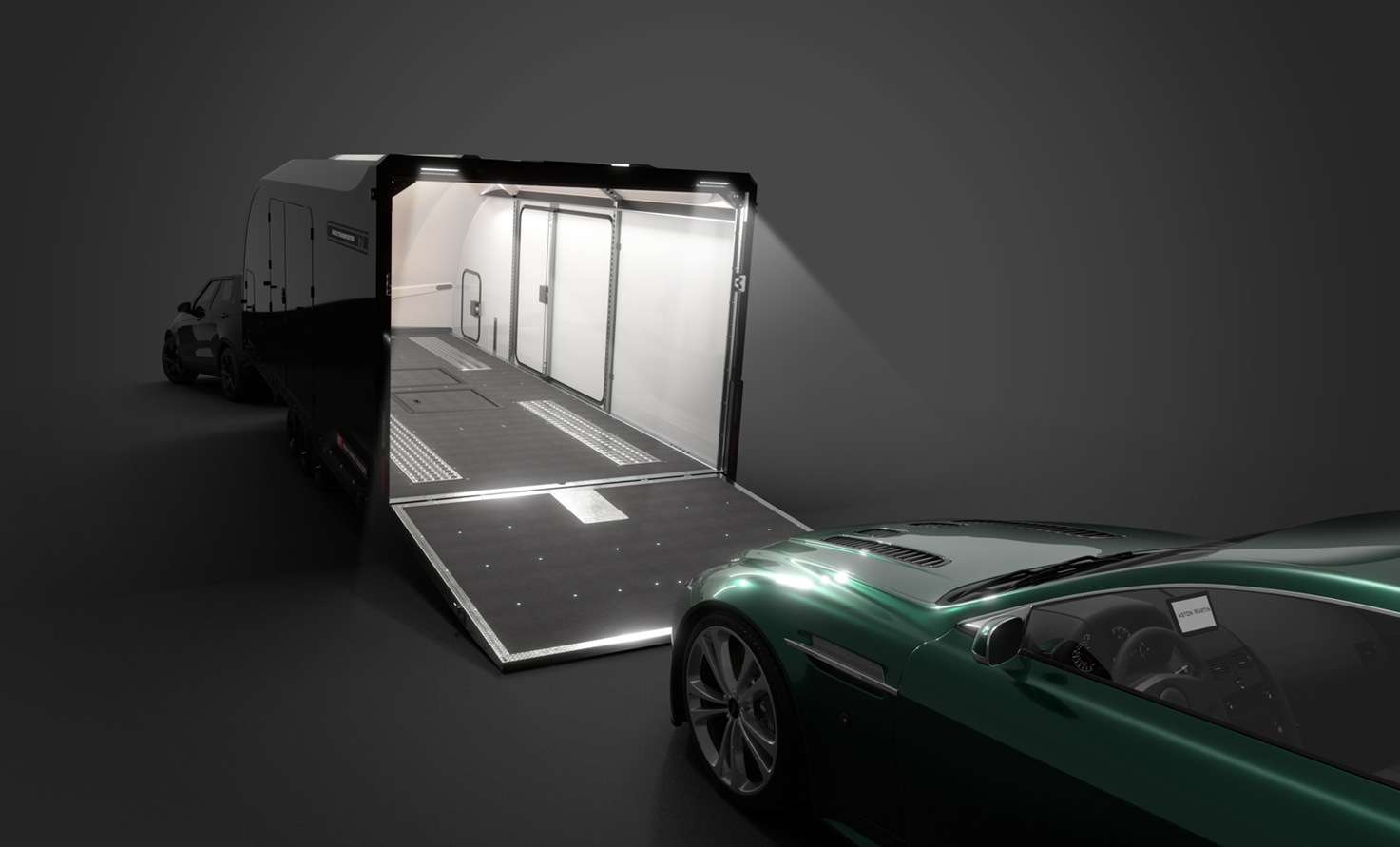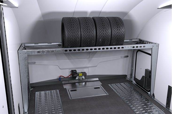 - Rampes d’assistance au chargement – RACE RAMPS – permettant de réduire l’angle d’accès à 3° pour l’embarquement de véhicules de circuit à garde au sol ultra-basse avec rangement interne