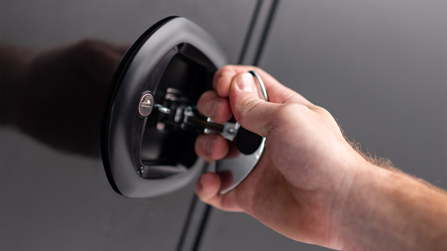 - 2 portillons de visite latéraux à l’avant de chaque côté donnant accès à l’équipement frontal et l’arrimage du véhicule embarqué avec encadrement aluminium et fermetures à clef