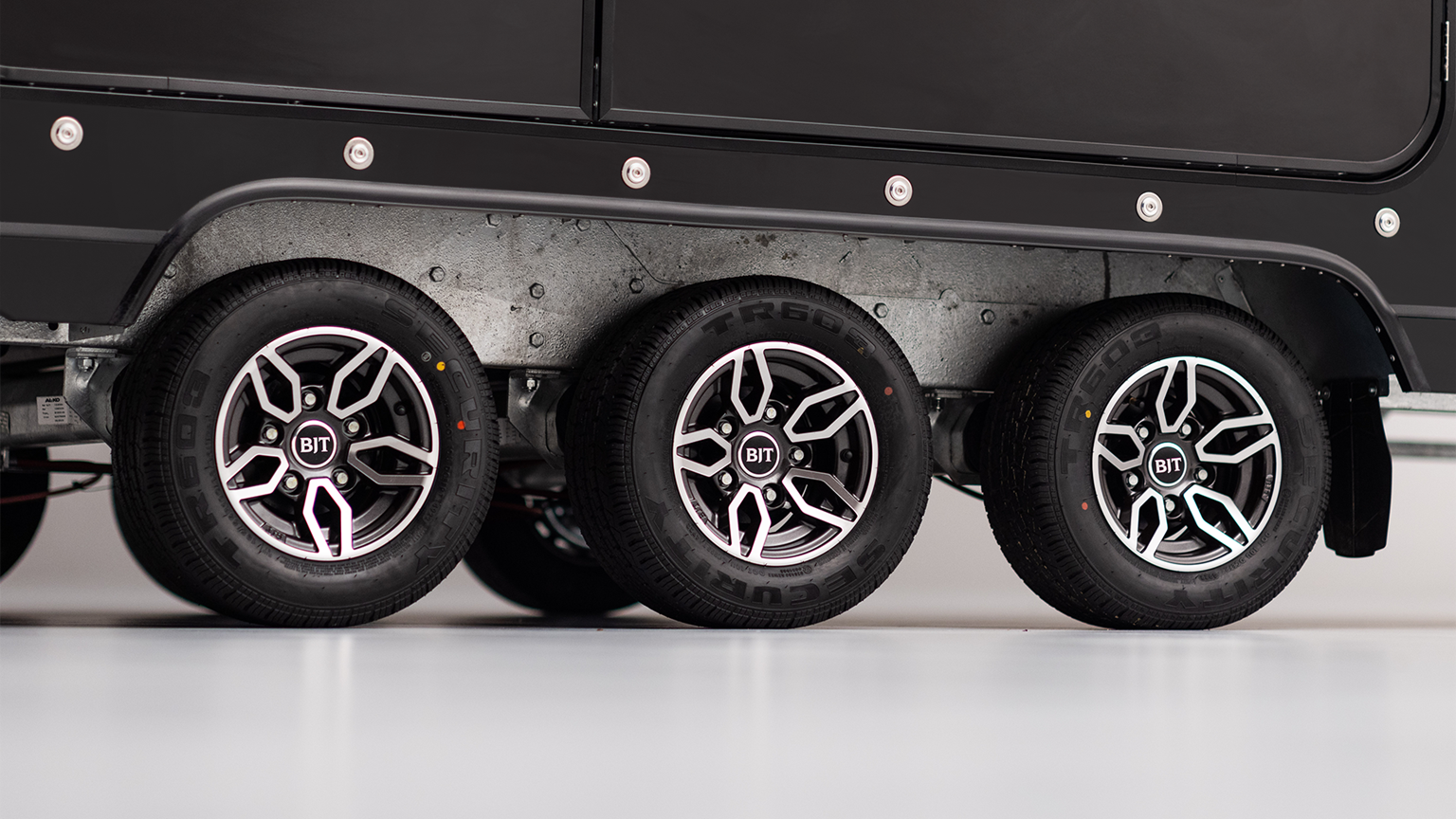 - 3 essieux freinés AL-KO HD avec roues 195/55 R 10 – 98N sous le plancher / hauteur de chargement 0.61 m