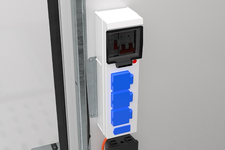 - Boîtier de distribution électrique 220V avec 3 prises secteur et 2 points de charge USB, permet l’utilisation de plusieurs appareils lorsque la remorque est connectée au secteur